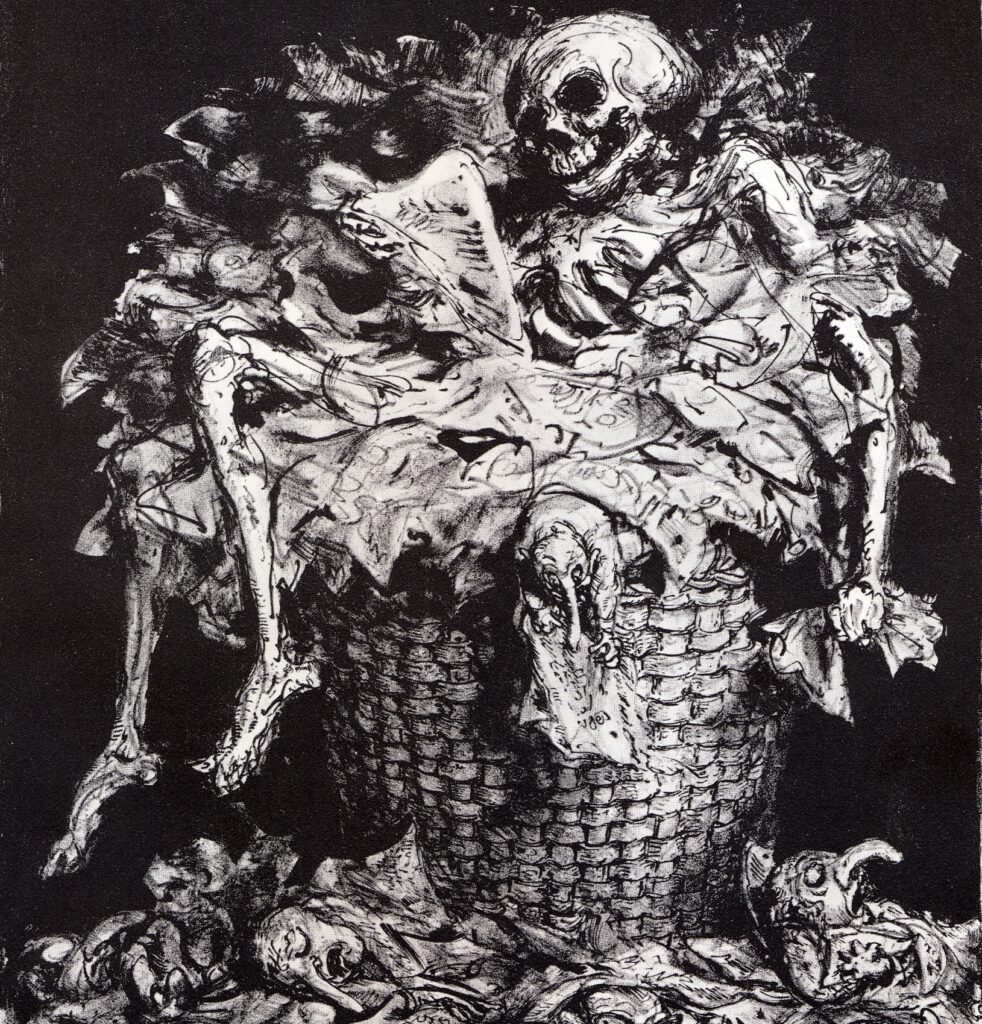 Endstation Papierkorb (Detail), Lithografie. © A. Paul Weber-Museum.
