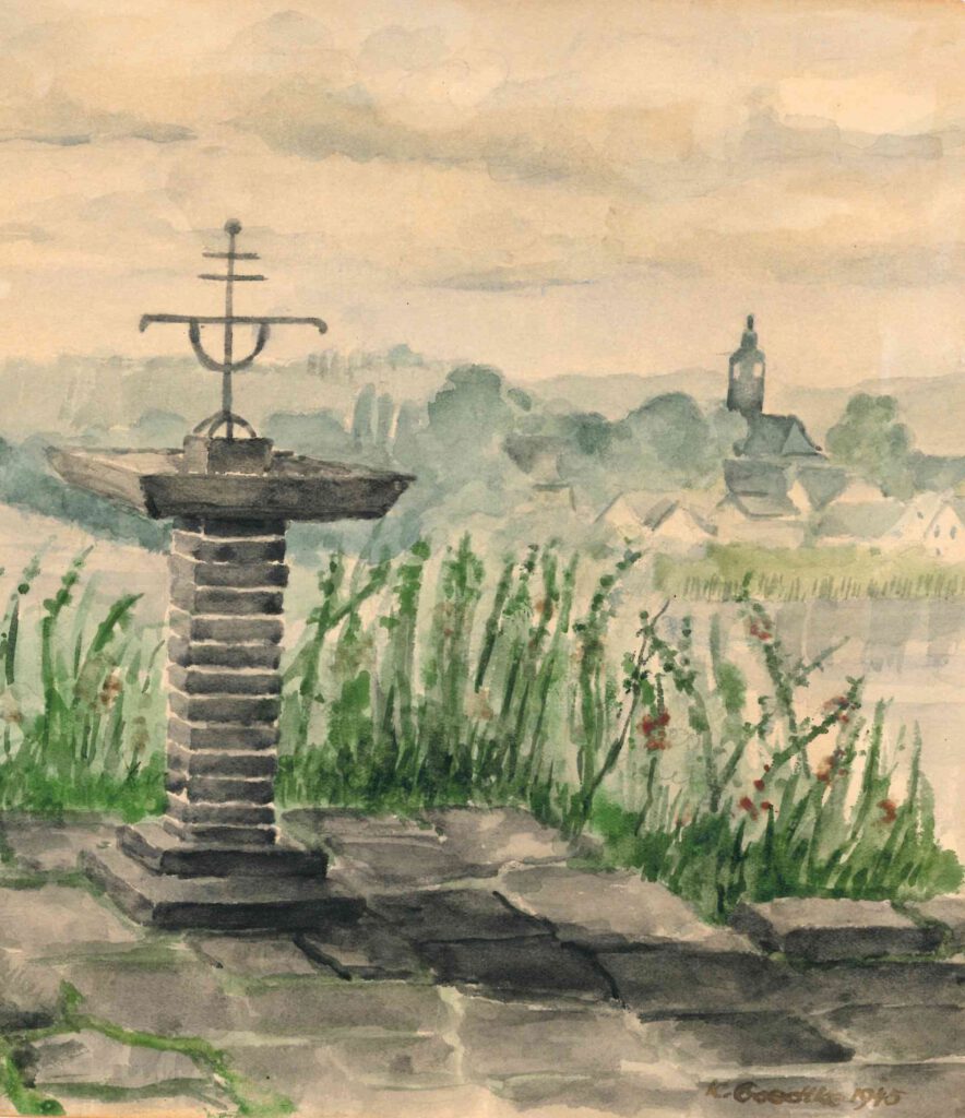 Karlheinz Goedtke, Blick auf Kleinbahndamm und St. Petri in Ratzeburg (Detail), 1945, Aquarell. © Kreismuseum Herzogtum Lauenburg.